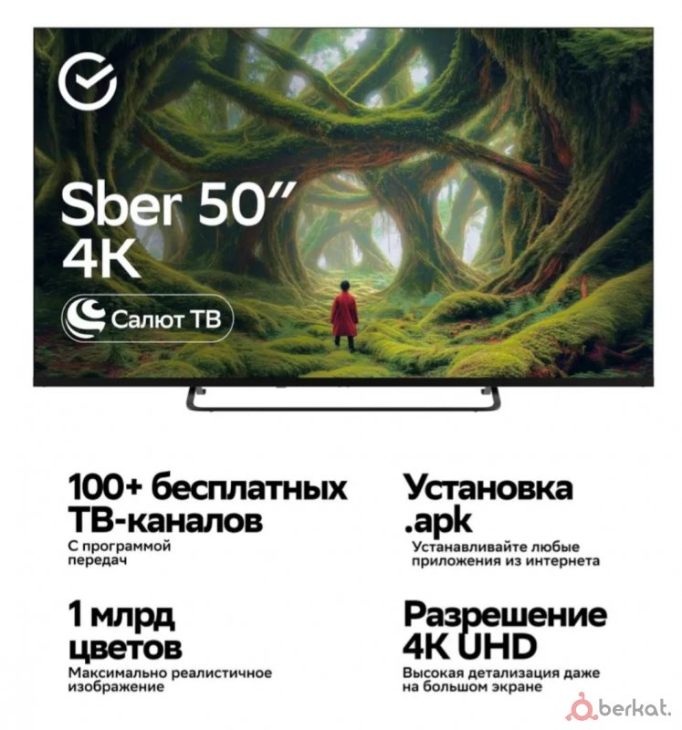 Телевизоры SBER 55" Смарт ТВ⚡️ 140 сантиметров по диагонали⚡️ULTRA_HD экран красивая картинка ⚡ удобная в управлении операционная система⚡ голосовой пульт⚡ Wi-Fi, VKвидео RUTUBE. ТВ каналы, бесплатно фильмы, сериалы, мультики⚡20 каналов через антенну(dvb-t2)⚡производство Россия.⚡