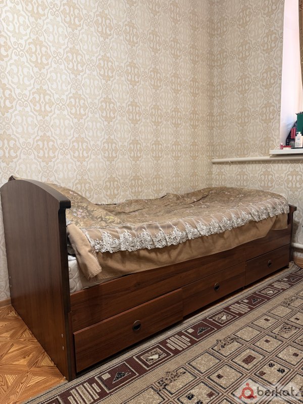 Кровать в отличном состоянии, без царапин. Имеет дополнительные ящики внизу. Использовалась в течение трёх лет.