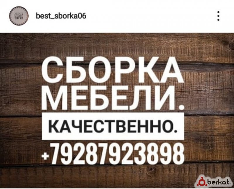 Ассаламу алейкум жители Республики предлагаем вам Профессиональнаую и качественнаую сборку мебели любой сложности от грамотных мастеров опыт работы 10 лет.работаем по всей Республики цены можно уточнить в Вацап. Можете найти в инстограме "сборка мебели Рустам" Далл аьтув бокхалб шун.т.89287308930 Телефон: +7(928)730-89-30