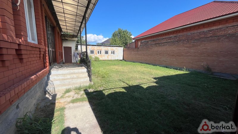 Продается кирпичный дом с железобетонным каркасом в шаговой доступности от мечети Хусейна Мержоева. первое фото ИИ · Участок ровный, площадью 15 соток, полностью огорожен забором из блоков. · Дом расположен на асфальтированной улице с удобными подъездами и разворотами с двух сторон. · Развитая инфраструктура в пешей доступности (5 минут): школа, детский сад, магазины, ФОК. Дом общей площадью около 300 кв.м требует завершения внутренней отделки и установки межкомнатных дверей. · Цокольный этаж: (высота потолков 2,6 м) · Площадь 150 кв. м. Включает три большие комнаты, котельную и прачечную. · Отделка: стены окрашены, на полу плитка по всей площади. · Коммуникации: система теплого пола и