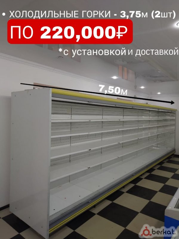 Продается большая холодильная горка для магазина! ❄️ - Вместительный, с множеством полок для любого товара - Состояние хорошее, идеален для овощей, напитков и заморозки - Отличное решение для увеличения ассортимента и удобства хранения 2 горки по 220 т. Доставка и установка входит в сумму