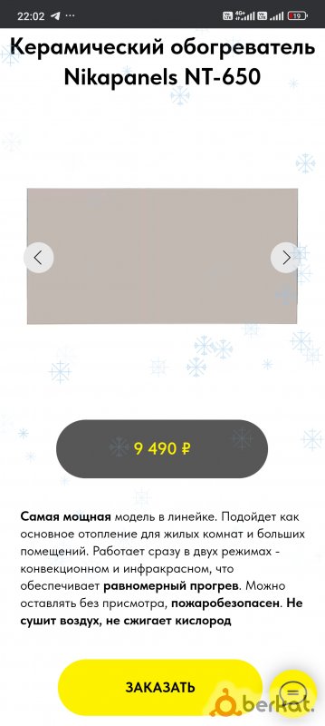 ПРЕИМУЩЕСТВА СИСТЕМЫ NIКАРАNЕLS * Экономичность достигается за счет нагревательного элемента и терморегулятора *длинa 120 х 60 выcотa ( тoлько навесной ) 800 Вт.= 12- 24 кв.м * Безопасность (возгорание предметов исключено, т.к. нагревательный элемент залит термоустойчивым составом и проникновение различных частичек пыли и других предметов невозможно) * Не боятся скачков электроэнергии за счет свойств и качеств нагревательного элемента, поэтому можно оставлять приборы включенными без присмотра. * Влагоустойчивые класс защиты IР 33, это означает, что брызги воды не повлияют на работу обогревателя, не будет короткого замыкания, сверху защищает керамика, заднюю сторону металлическая крышка