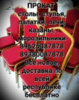 прокат столы, стулья, кипятильники, морозильники, печи, палатки, пасуда, казаны, доставка по Ингушетии т. 89287916404